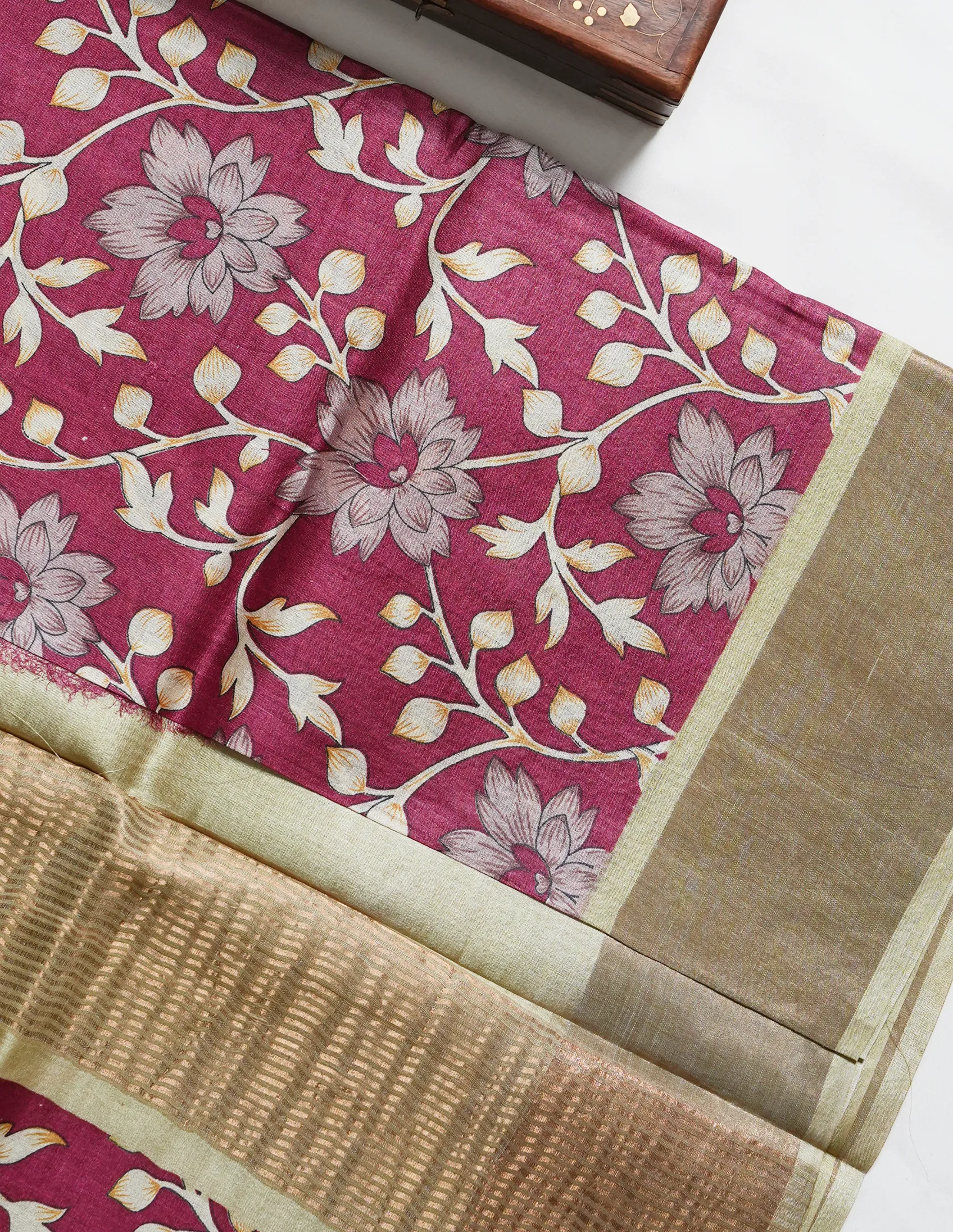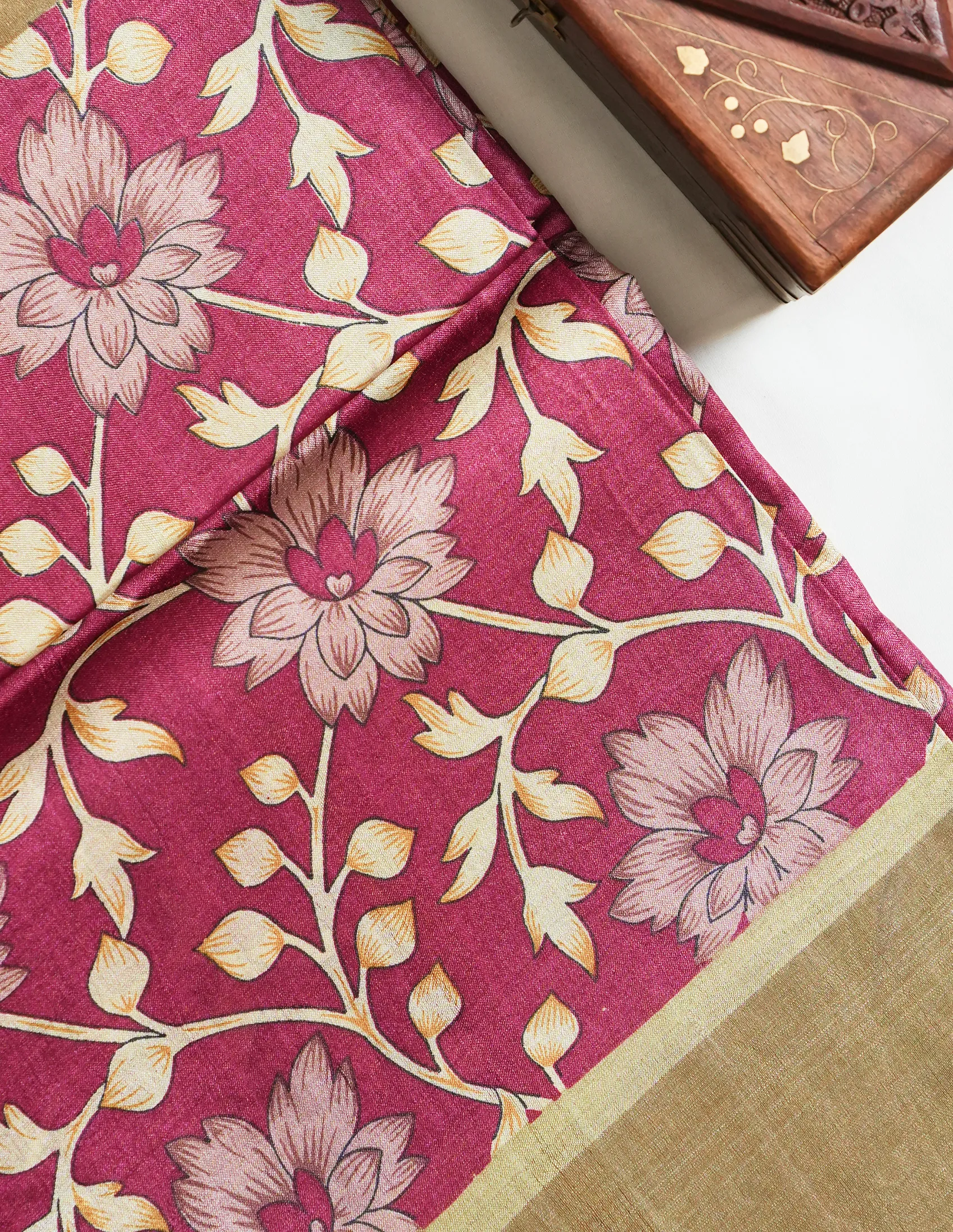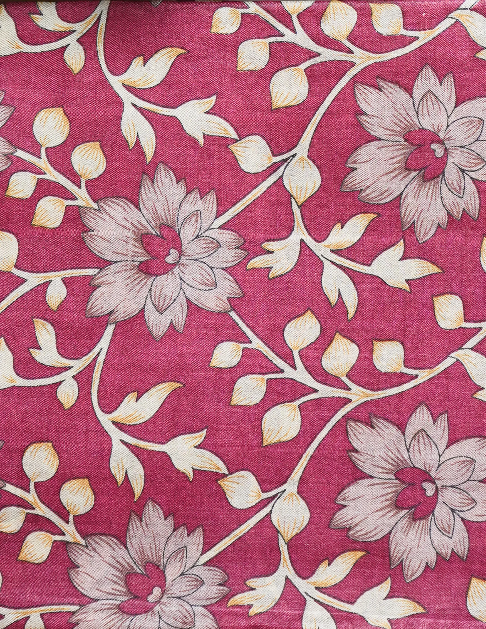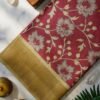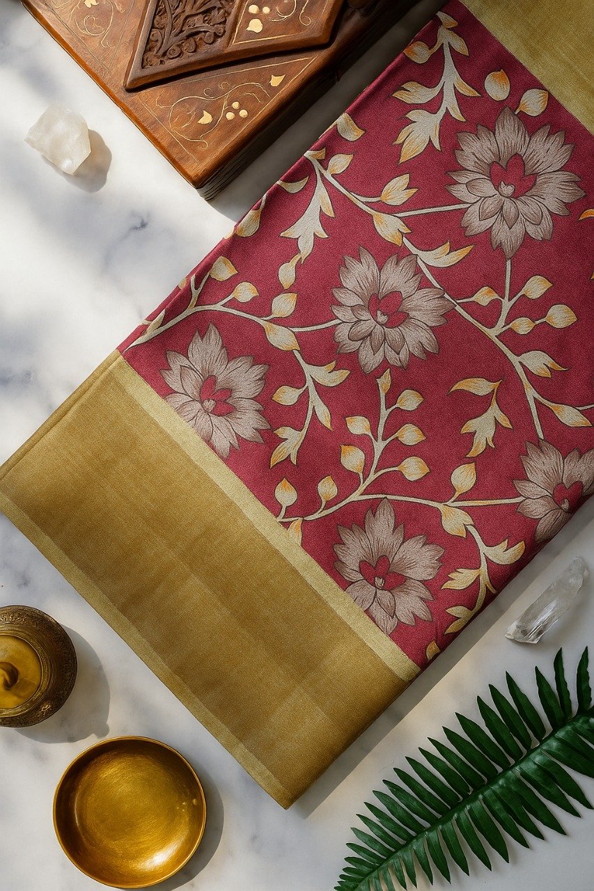 Berry Maroon Floral Printed Tusser Saree