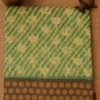 - Color & Design: The saree presents a fresh and distinctive aesthetic with its main body showcasing prominent diagonal stripes in varying shades of green and yellow.